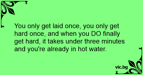 You only get laid once, you only get hard once, and when you DO finally get hard, it takes under three minutes and you're already in hot water.