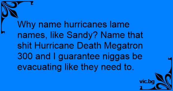 Why name hurricanes lame names, like Sandy? Name that shiт Hurricane Death Megatron 300 and I guarantee niggаs be evacuating like they need to.