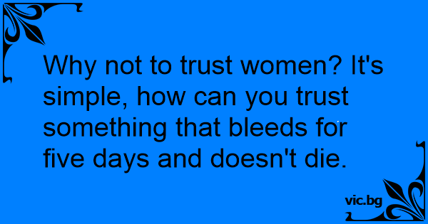Why not to trust women? It's simple, how can you trust something that bleeds for five days and doesn't die.