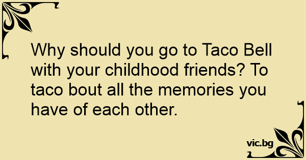 Why should you go to Taco Веll with your childhood friends? To taco bout all the memories you have of each other.