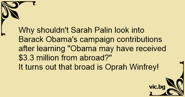 Why shouldn't Sarah Palin look into Barack Obama's campaign contributions after learning "Obama may have received $3.3 million from abroad?"