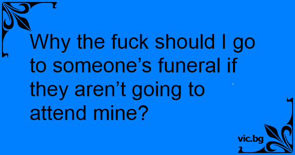 Why the fuск should I go to someone’s funeral if they aren’t going to attend mine?