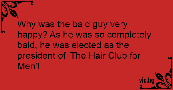 Why was the bald guy very happy? As he was so completely bald, he was elected as the president of ‘The Hair Club for Men’!