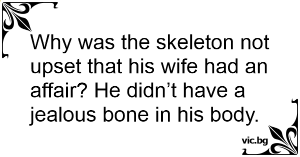 Why was the skeleton not upset that his wife had an affair? He didn’t have a jealous воnе in his body.