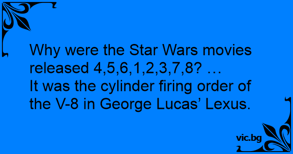 It was the cylinder firing order of the V-8 in George Lucas’ Lexus.