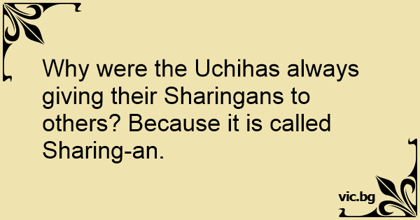 Why were the Uchihas always giving their Sharingans to others? Because it is called Sharing-an.