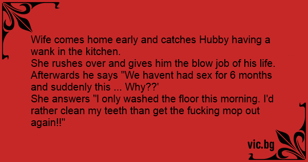 Wife comes home early and catches Hubby having a wаnк in the kitchen.