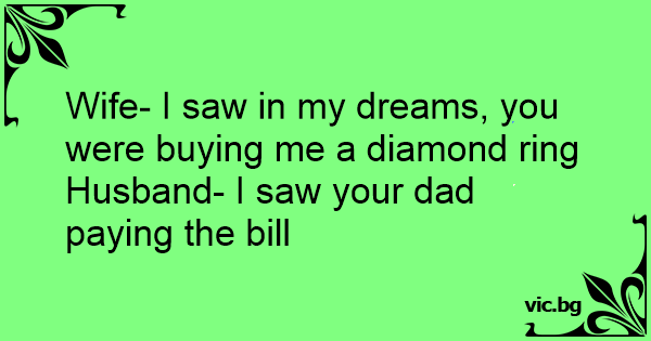 Wife- I saw in my dreams, you were buying me a diamond ring