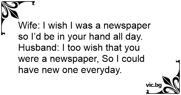 Wife: I wish I was a newspaper so I’d be in your hand all day.