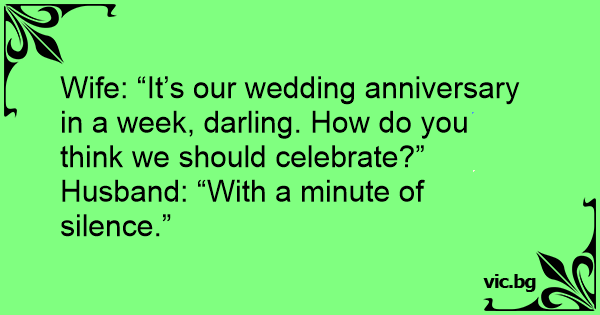Wife: “It’s our wedding anniversary in a week, darling. How do you think we should celebrate?”