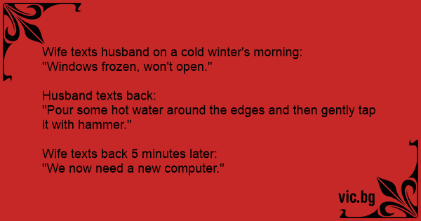 Wife texts husband on a cold winter's morning: