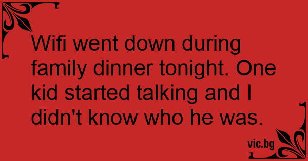 Wifi went down during family dinner tonight. One kid started talking and I didn't know who he was.