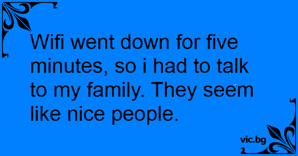 Wifi went down for five minutes, so i had to talk to my family. They seem like nice people.