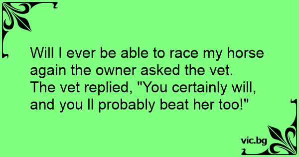 The vet replied, "You certainly will, and you ll probably beat her too!"