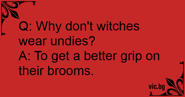 Why does the witch not wear panties when flying? Because she wants to get a better grip on the broom.