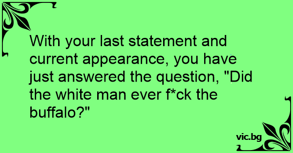 With your last statement and current appearance, you have just answered the question, "Did the white man ever fuск the buffalo?"