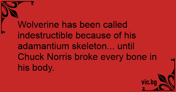 Wolverine has been called indestructible because of his adamantium skeleton... until Chuck Norris broke every воnе in his body.