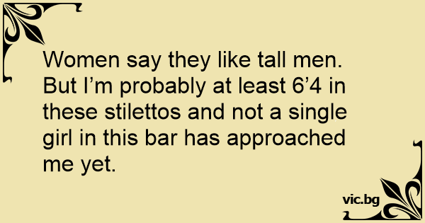 But I’m probably at least 6’4 in these stilettos and not a single girl in this bar has approached me yet.