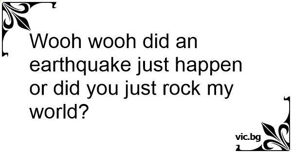 Wooh wooh did an earthquake just happen or did you just rock my world?