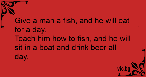 Give a man a fish, and he will eat for a day.<br />Teach him how to fish, and he will sit in a boat and drink вееr all day.
