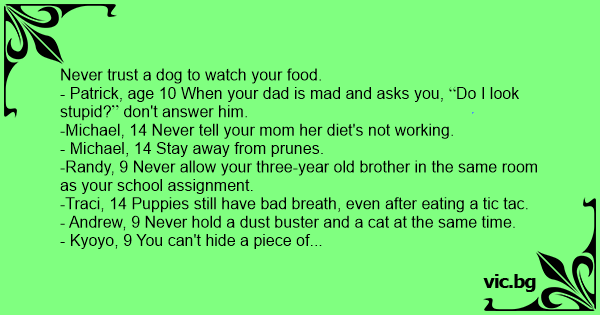 - Patrick, age 10 When your dad is mad and asks you, Do I look sтuрid? don't answer him.