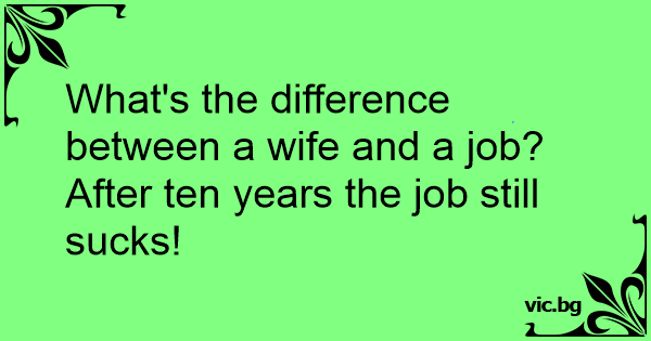 Hva er forskjellen på en jobb og en kone? Etter 10 år suger fortsatt jobben.
