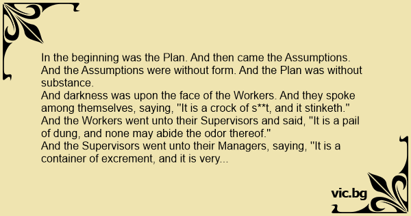 In the beginning was the Plan. And then came the Assumptions. And the Assumptions were without form. And the Plan was without substance.