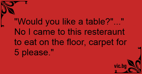 "Would you like a table?"..." No I came to this resteraunt to eat on the floor, carpet for 5 please."