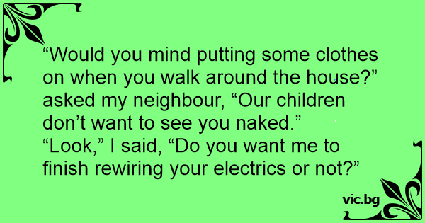 “Look,” I said, “Do you want me to finish rewiring your electrics or not?”