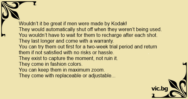 Wouldn’t it be great if men were made by Kodak!