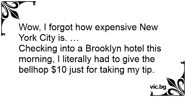 Checking into a Brooklyn hotel this morning, I literally had to give the bellhop $10 just for taking my tip.