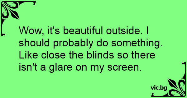 Wow, it's beautiful outside. I should probably do something. Like close the blinds so there isn't a glare on my screen.