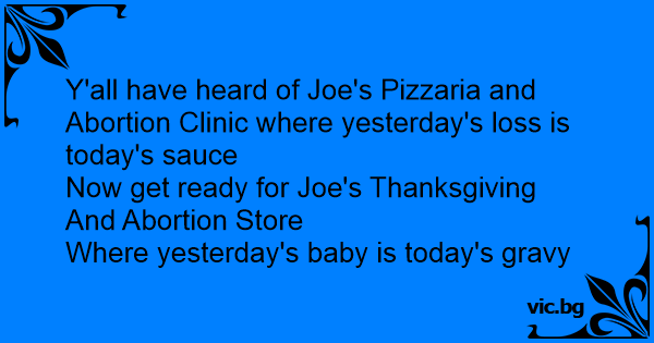 Now get ready for Joe's Thanksgiving And Abortion Store