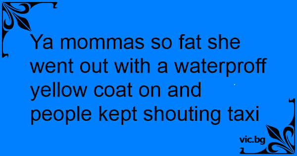 Ya mommas so fат she went out with a waterproff yellow coat on and people kept shouting taxi