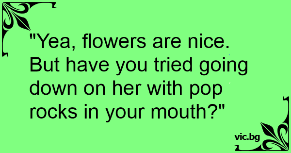 "Yea, flowers are nice. But have you tried going down on her with pop rocks in your mouth?"