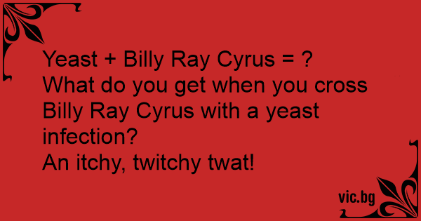 Yeast + Billy Ray Cyrus = ?<br />What do you get when you cross Billy Ray Cyrus with a yeast infection?<br />An itchy, twitchy тwат!