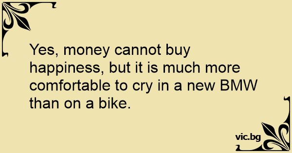 Yes, money cannot buy happiness, but it is much more comfortable to cry in a new BMW than on a bike.