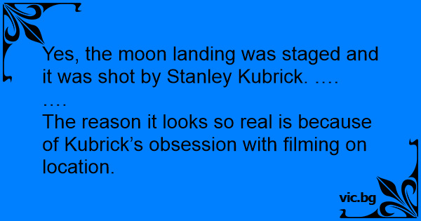 Yes, the moon landing was staged and it was shot by Stanley Kubrick. ….