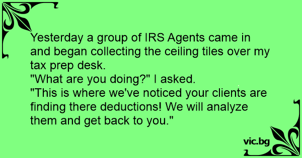 Yesterday a group of IRS Agents came in and began collecting the ceiling tiles over my tax prep desk.