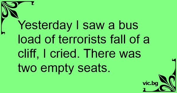 Yesterday I saw a bus load of terrorists fall of a cliff, I cried. There was two empty seats.