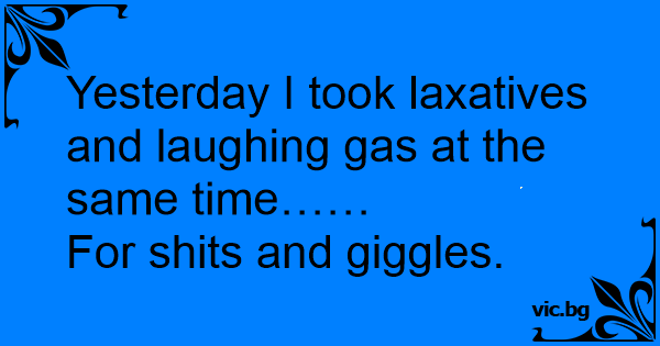 Yesterday I took laxatives and laughing gas at the same time……<br />For shiтs and giggles.