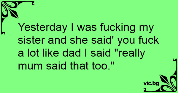 Yesterday I was fuскing my sister and she said' you fuск a lot like dad I said "really mum said that too."