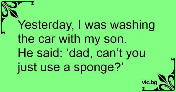 Yesterday, I was washing the car with my son.
