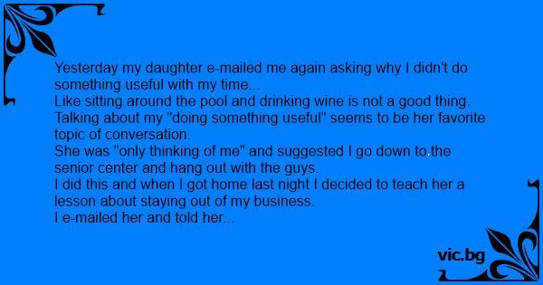Yesterday my daughter e-mailed me again asking why I didn't do something useful with my time...