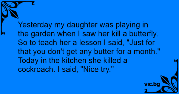 So to teach her a lesson I said, "Just for that you don't get any butter for a month."