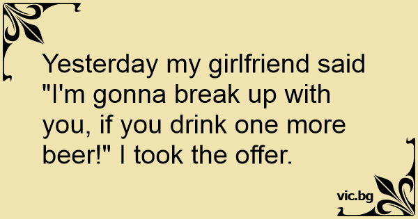 Yesterday my girlfriend said "I'm gonna break up with you, if you drink one more вееr!" I took the offer.