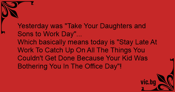 Which basically means today is "Stay Late At Work To Catch Up On All The Things You Couldn't Get Done Because Your Kid Was Bothering You In The Office Day"!