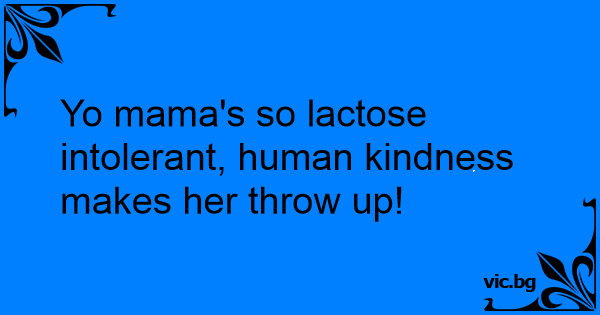 Yo mama's so lactose intolerant, human kindness makes her throw up!