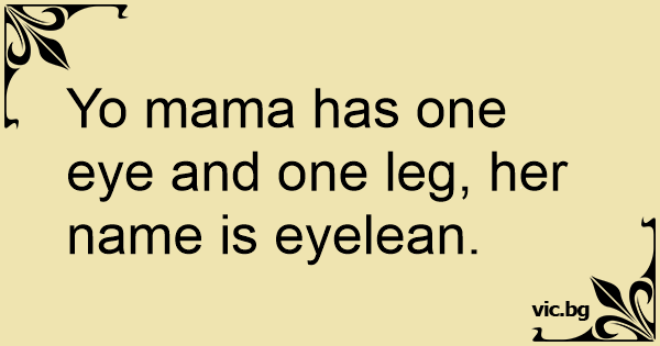 Yo mama has one eye and one leg, her name is eyelean.