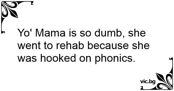 Yo' Mama is so dumb, she went to rehab because she was hooked on phonics.